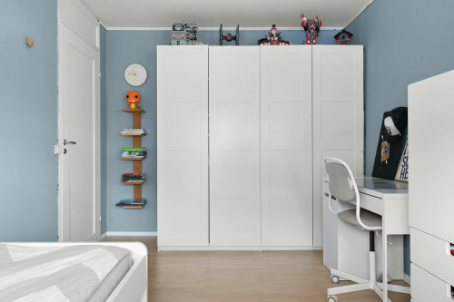 - Kølige toner som lyseblå eller mintgrøn kan give en frisk og luftig stemning, især hvis garderoben ligger i forbindelse med soveværelset.